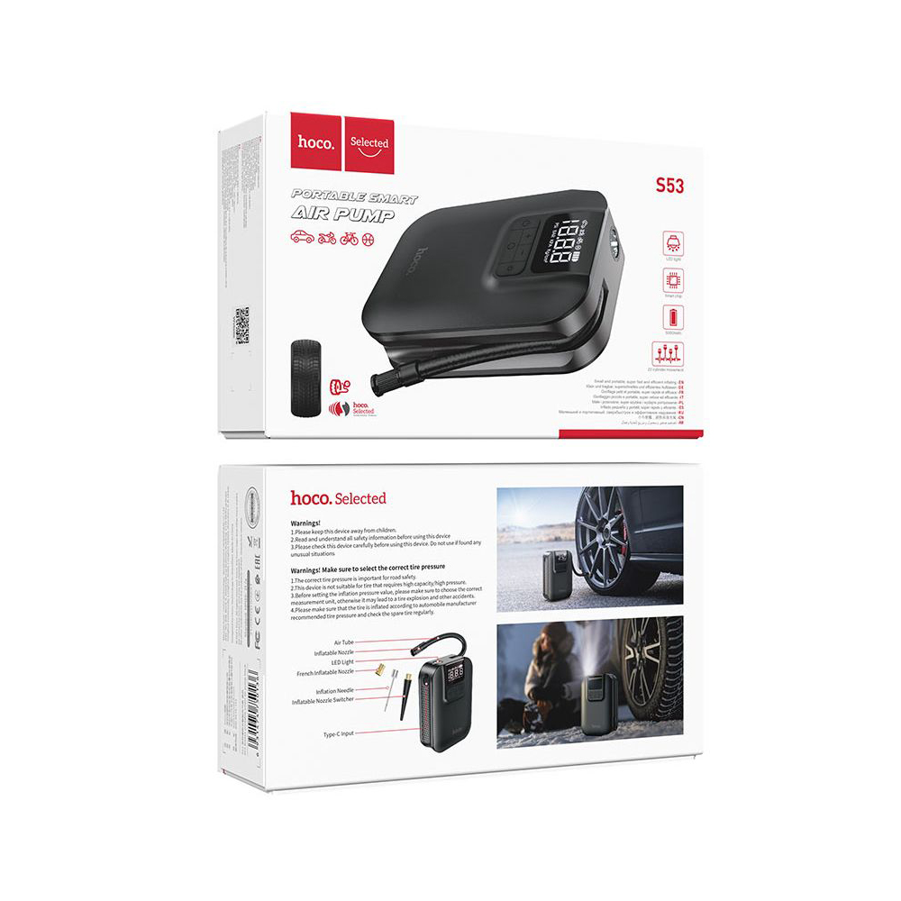 Smart and Portable: The HOCO S53 combines intelligent technology with portability, making it the perfect tool for a wide range of inflation needs.